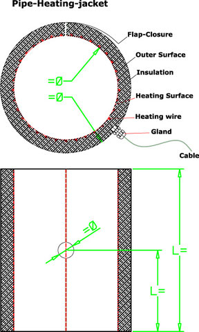 Ein textiles, flexibles Gebilde aus einer Heizfläche (am Teil anliegend), ein Heizleiterträger-Gewebe, das mit einem glasfaser isolierten Heizleiter (Widerstandsdraht) benäht wird, einer Isolationsschicht und einem Deckmantel. Diese Lagen werden miteinander verbunden und ergeben ein dreidimensionales Gebilde. In der Regel sind die Manschetten geschlitzt und mittels Verschlusstechnik (z.B. Klett -Flausch) zu verschließen. Die Anschlussleitungen sind aus dem Deckmantel ausgeführt und können dann an Regelgeräte angeschlossen werden. Wir können jegliche Kombination und Form für Sie passgenau Umsetzen.